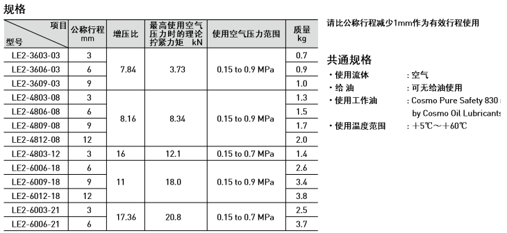 擰緊部件的工作速度隨使用增壓器而變化。超過左表速度使用會(huì)造成密封件早期磨損,脫落,由于混入空氣使輸出力降低,可能會(huì)造成空氣回路中混入油。尤其是如果增壓器的氣壓活塞返回時(shí)間比擰緊部件回復(fù)時(shí)間早,會(huì)是回路中油壓為負(fù)壓,造成混入空氣。