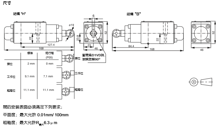 PARKER換向閥D1VC/D1VD系列產品尺寸圖: